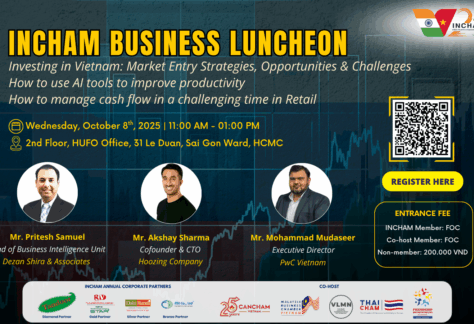 INCHAM is a Non-Profit organization, licensed and established in January 1999 with the objective to strengthen ties of Indian Businesses with the Vietnamese authorities for promoting ‘Economic and Business’ relations between India and Vietnam and also to be the focal point of the Indian Community in Vietnam.